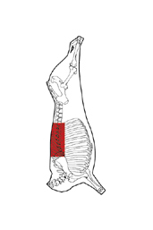Ribs Prepared is prepared from a Forequarter after the removal of the Brisket and Chuck Square Cut. Short Ribs portion is removed at a distance of 75mm from the M. longissimus dorsi at the loin end, parallel with the vertebrae column to the specified rib. The body of the vertebrae is removed exposing the lean meat but leaving the spinous processes attached.
