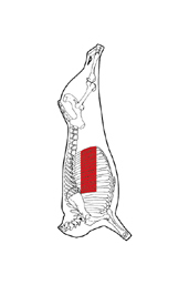 Short Ribs are prepared from a Forequarter after the removal of the Brisket / Ribs Prepared / Chuck Square Cut. The cutting line is approximately 75mm from the eye of meat and parallel to the vertebral column. The M. cutaneus trunci is removed.