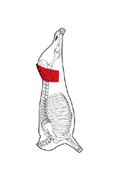 The Loin is separated from the Hindquarter by a cut at the lumbosacral junction in a straight line cranial to the tuber coxae to the ventral portio of the Flank. The ventral portion of the tail is removed by a cut medial to and removing the subiliac lymph node.
