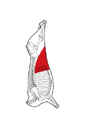 Thin Flank is prepared from a Hindquarter by a cut commencing at the superficial inguinal lymph node, bisecting the M. rectus abdominis and following the contour of the hip, and continuing to the specified rib and following the contour of the rib to the ventral edge. The connective tissue on the ventral edge is removed.