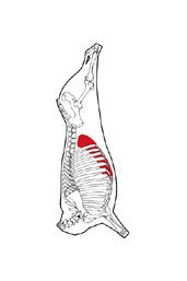 Inside Skirt is located on the inside of the abdominal wall of the Hindquarter and extends to the Naval End portion of the Brisket. The peritoneum and fat flakes are removed.