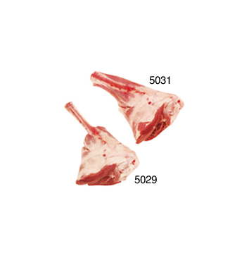 Hindshank is prepared from a Leg and consists of the tibia, tarsus and calcaneal tuber bones and associated muscles. The Hindshank is removed from the Leg by a cut through the heel muscle of the Silverside, through the stifle joint separating the tibia and the femur. The Shank is tipped at the caudal level of the shin meat on the tibia.